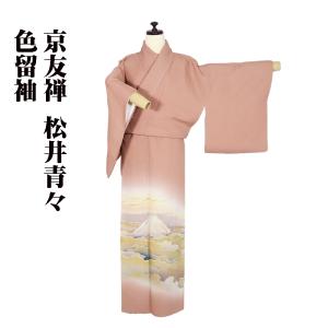 京友禅 松井青々氏作 色留袖 袷 正絹 レンガ色 暈し 富士山 雲海 比翼仕立て SSサイズ ki30402 美品 レディース フォーマル 送料込み