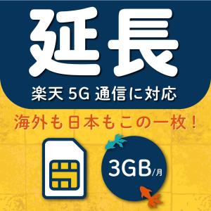 【延長専用】楽天モバイル プリペイド SIM 3GB 月間 楽天回線 au 国際ローミング利用可能 データ通信テレワーク prepaid SIM