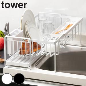 特典付き 山崎実業 tower 水切りラック スペース広がる 伸縮 1段 スチール タワー ( タワーシリーズ 水切りカゴ 水切り 大容量 コンパクト 水切りかご )