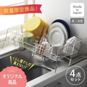 くらし屋オリジナル 燕三条製 シンクサイド用 伸縮ステンレス水切り 4点セット 1306278 ヨシカワ 日本製 同梱不可