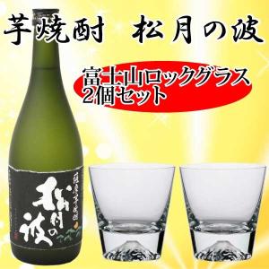 富士山グラス ペア 芋焼酎 松月の波 720ml ロックグラス2個 送料無料 セット プレゼント 高級 田島硝子 神酒造 御祝い