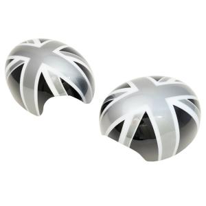 【互換品】ri-mi556-359jb (黒x白x銀 ユニオンジャック) ドアミラーカバー ※右ハンドル専用 F54 F55 F56 F57 F60 BMW MINI ポリカーボネイト製 ブラック モノク