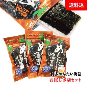 【訳あり】 送料無料 メール便 ビールに合う! 博多めんたい海苔 3袋 袋詰(10切20枚) お試しセット 味付けのり おつまみ 井口食品