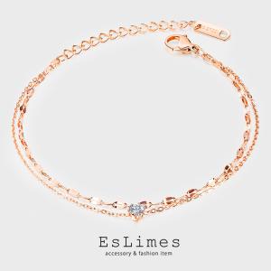 ブレスレット レディース 2連 ステンレス製 チェーン シンプル CZダイヤ 18KGP シルバー ピンクゴールド 人気 女性 ギフト
