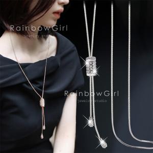 ロングネックレス レディース リング ボール ラリエット 調節可能 キラキラ ステンレス チェーン 女性 誕生日お祝い ギフト クリスマス