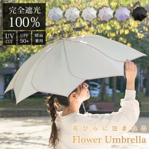 日傘 完全遮光 長傘 花びら傘 晴雨兼用傘 UVカット 遮光率100% 雨傘 レディース 遮光遮熱 軽量 おしゃれ かわいい 撥水 紫外線 熱中症対策 プレゼント
