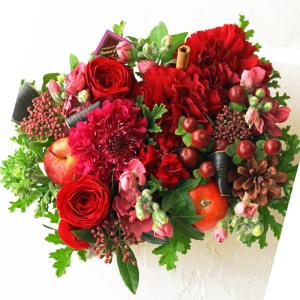花 還暦 プレゼント 生花 フラワーアレンジ 誕生日 お祝い レッド 赤 女性 60歳 妻 おしゃれ 退職祝い フラワーケーキ アレンジメント 母 結婚記念日 母の日 w-r