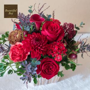 還暦祝い 花 フラワーアレンジメント 誕生日 ギフト 開店祝い おしゃれ プレゼント 発表会 楽屋花 フラワーアレンジ 赤 レッド 60歳 お祝い 女性 男性 生花 ha-r