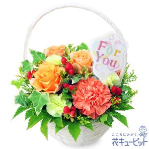 【退職祝い】花キューピット 花 ギフト お祝い プレゼントオレンジバラのナチュラルバスケット
