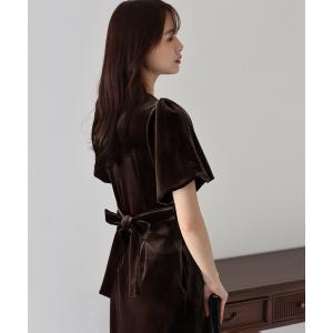 セットアップ 「オケージョン対応」2WAY パール付け襟タックフレアトップス+シークレットゴムパンツセットアップ 結婚式 お呼ばれ パーティードレス