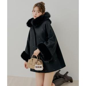 コート アウター 「WEB限定」ビジュー付きファー衿ケープコート レディース