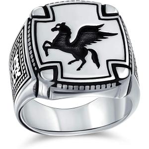 【並行輸入品】[Bling Jewelry] 個人化された大きい 2 つの調子の古代ギリシャの神話の飛行の馬の創造物のペガサスの署名リングは人のティー