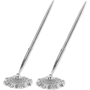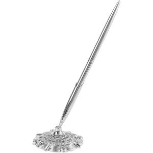 受付ペン デスクペン 署名ペン スタンド付き ボールペン 結婚式 ウェディング ホテル 応接間 (シルバー)