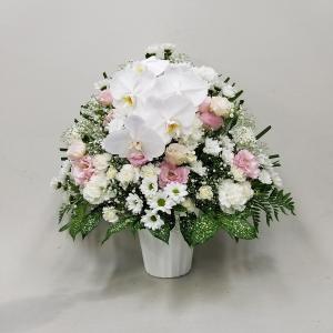 お供え お悔やみ お盆 法要 一周忌 四十九日 供花 即日 送料無料 アレンジメント 白 ピンク 東京発 日本橋 デザイン 胡蝶蘭 カーネーション アレンジ(H60)