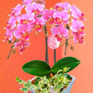 胡蝶蘭 ギフト 産地直送の花ギフト ミディ胡蝶蘭 2本立ち ピンク系おまかせ 観葉寄せ 5号 陶器鉢入り 椎名洋ラン園の胡蝶蘭 ミディー胡蝶蘭【A-105】