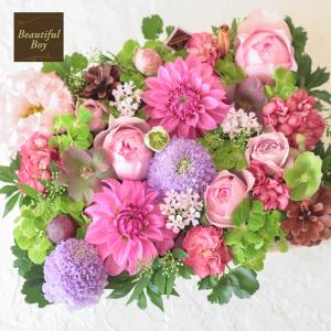 【誕生日フラワーギフト】花キューピット 女性 男性 彼氏彼女 夫妻 父母 ギフト プレゼント ピンクと紫のナチュラルなアレンジメント