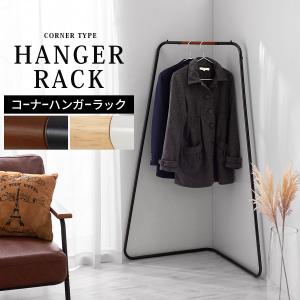 衣類収納 ハンガーラック コーナーハンガーラック L字 パイプハンガー 洋服掛けラック ワードローブ 洋服ラック スリム 低め スチール 天然木