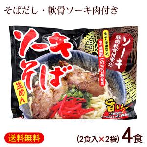ソーキそば 2食入×2袋 (麺 そばだし 味付豚肉ソーキ) 袋タイプ /シンコウ食品 生麺 沖縄そば 4人前(M便)