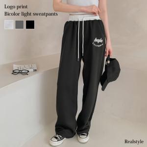 スウェットパンツ レディース 夏 スエット 下 ウエストゴム 部屋着 ルームウェア 白 黒 薄手 ゆったり ポケット ボトムス ロゴ プリント