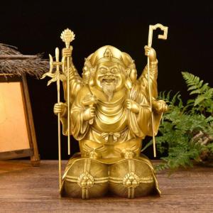 大黒天 三面大黒天 銅製 開運 商売繁盛 金運アップ 真鍮 仏像 置物 毘沙門天 開運招福七福神 商売繁盛 無病息災 福徳 福運 厄除け ギフト 贈り物 (高さ10CM)