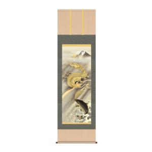 森山 観月 開運掛軸(尺三) 「霊峰昇鯉登龍門」 化粧箱入り MD5-034