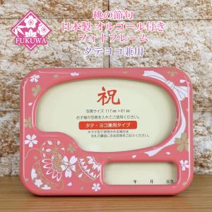 雛人形 お名前木札 コンパクト オルゴール付き 写真立て 【日本製 フォトフレーム タテヨコ兼用型 小(桜に毬/ピンク)】