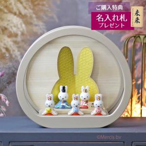 雛人形 ケース飾り miffy ミッフィー 磁器 ひな人形 うさこ 親王 官女 五人飾り 円型 丸型 木目バック モカベージュ塗 アクリルケース ケース入り 吉徳