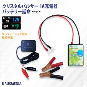 クリスタルパルサー バッテリー 延命 1A 充電器付 セット サルフェーション除去 デサルフェータ 12V チャージャー Y字端子