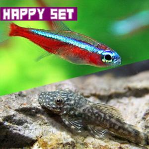 (熱帯魚)ハッピーセット カージナルテトラ ブリード 約1.5-2cm 6匹 + ミニブッシープレコ 約3-5cm 1匹