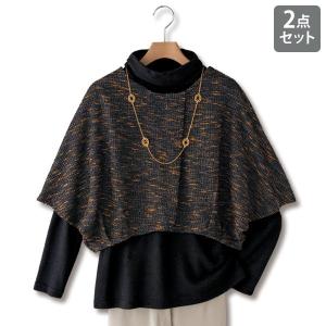 アンサンブル レディース おしゃれ 秋冬 ミセス シニア ファッション 40代 50代 60代 70代 80代 ツイード風起毛カットソーアンサンブル