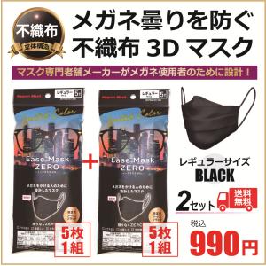 不織布 マスク メガネ 曇りにくい ブラック 黒 眼鏡 レンズが曇りにくいマスク【5枚入り×2セット= 10枚】レギュラーサイズ 人気 飛沫防止 /曇らない 送料無料