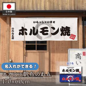 のれん 横長 名入れ 170cm幅 60cm丈 ホルモン焼 厚手 丈夫 2色 エステル帆布 暖簾 店頭 業務用 店舗用 飲食店(受注生産 44533 44534)