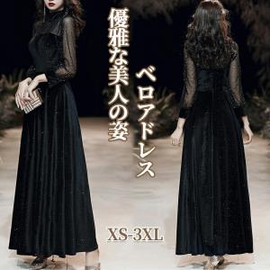 パーティードレス 結婚式 ベロアドレス ベロア素材 ベルベット ラメ スパンコール キラキラ 長袖 レディース 春秋冬 ワンピース 韓国 お呼ばれ 成人式 同窓会