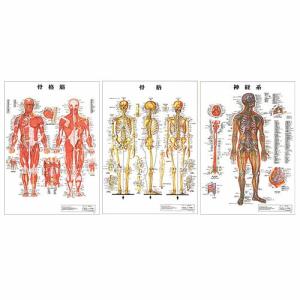 医道の日本社 人体解剖学チャート骨格筋 ポスター 3枚セット(骨格筋・骨格・神経図) パネルなし+レビューで選べるおまけ付