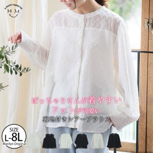 大きいサイズ レディース ブラウス 長袖・五分袖・ノースリーブ 袖丈選べる ドットジャガード ブラウス シャツ トップス LL 3L 4L 5L 6L 7L 8L A
