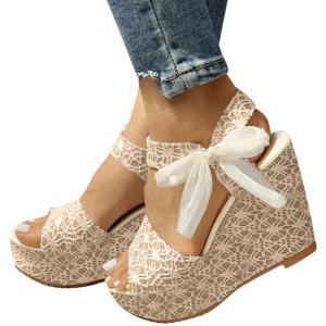 【並行輸入品】Aniywn レディース レースアップ エスパドリーユ ウェッジサンダル アンクルストラップ 花柄プラットフォームサンダル ソフト