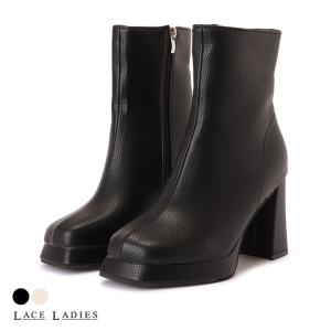 チャンキーヒール ショートブーツ PUレザー シボ感 スクエアトゥ サイドジップ 太ヒール ハイヒール レディース 春 秋 冬 美脚 脚長