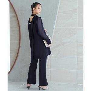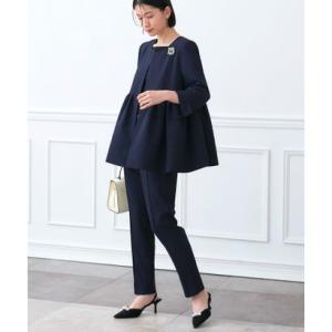 ルイルエブティック RUIRUE BOUTIQUE ストレッチ | ノーカラー タックギャザー ペプラム スリムパンツ スーツ | 入学式 卒業式 卒