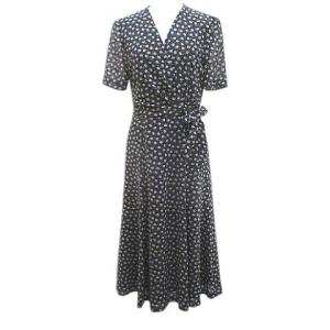 ハナエモリ HANAE MORI Boutique 小花柄 半袖 カシュクール ワンピース ロング丈 9A3 黒系 ブラック リボン 裏地 レディース