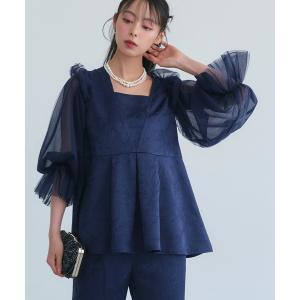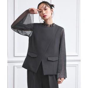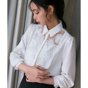 ルイルエブティック RUIRUE BOUTIQUE オーガンジーレース デザインブラウス | 長袖 スタンドカラー トップス 体型カバー オフィスカジ