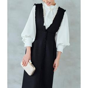 セレモニースーツ セットアップ タイパールチェーンボリューム袖ブラウス&ツイードジャンパースカート レディース