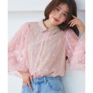 ブラウス シャツ 洗える ストレッチ | チュール ドット シャツカラー ブラウス | 長袖 トップス シャツ ブラウス レディース