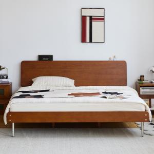 CAGUUU シンプルレトロ木製ベッド L156*W214*H87.5cm シンプルレトロ天然木ベッド ヴィンテージ調ウッドベッド ナチュラルウッドベッド