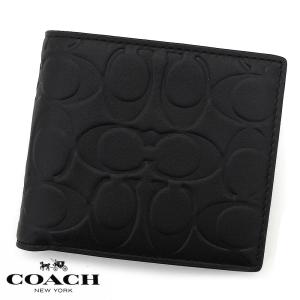 コーチ 財布 COACH 新作 新品 メンズ 二つ折り財布 コインケース付き カーフ レザー CR-378 BLK ブラック (F75003)【コーチ箱 紙袋付き ラッピング済み】