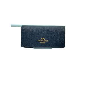 COACH◆キーケース_6リング_クロスグレインレザー/レザー/NVY/レディース
