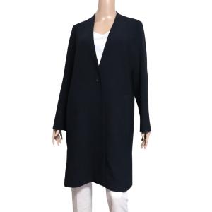 美品/ドゥクラッセ DoCLASSE ロングジャケット 表記 11号 L 相当 紺 ネイビー ノーカラー 無地 シンプル 伸縮性 春 秋 アウター レディース