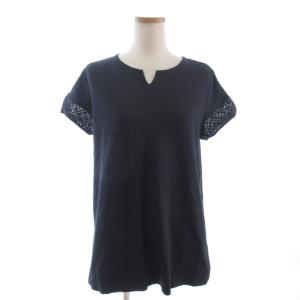 ドゥクラッセ DoCLASSE 美品 カットソー ブラウス 半袖 レース 切替 コットン 30866-490 ダークグレー L レディース