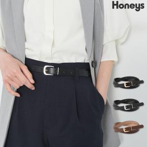 ベルト レディース 黒 シンプル アクセント フェイクレザー オフィス 通勤 上品 大人カジュアル Honeys ハニーズ メタルループベルト