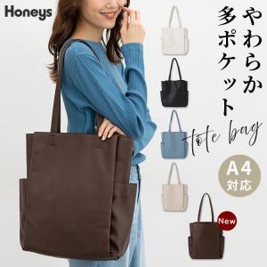 トートバッグ バッグ 鞄 多ポケット A4サイズ対応 合皮 柔らか合皮 A4 無地 開閉マグネット 縦型 レディース Honeys ハニーズ やわらか多ポケットトート