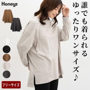 トップス Tシャツ ロンT 長袖Tシャツ カットソー 長袖 コットン 綿 チュニック フリーサイズ レディース Honeys ハニーズ ゆるチュニックTシャツ